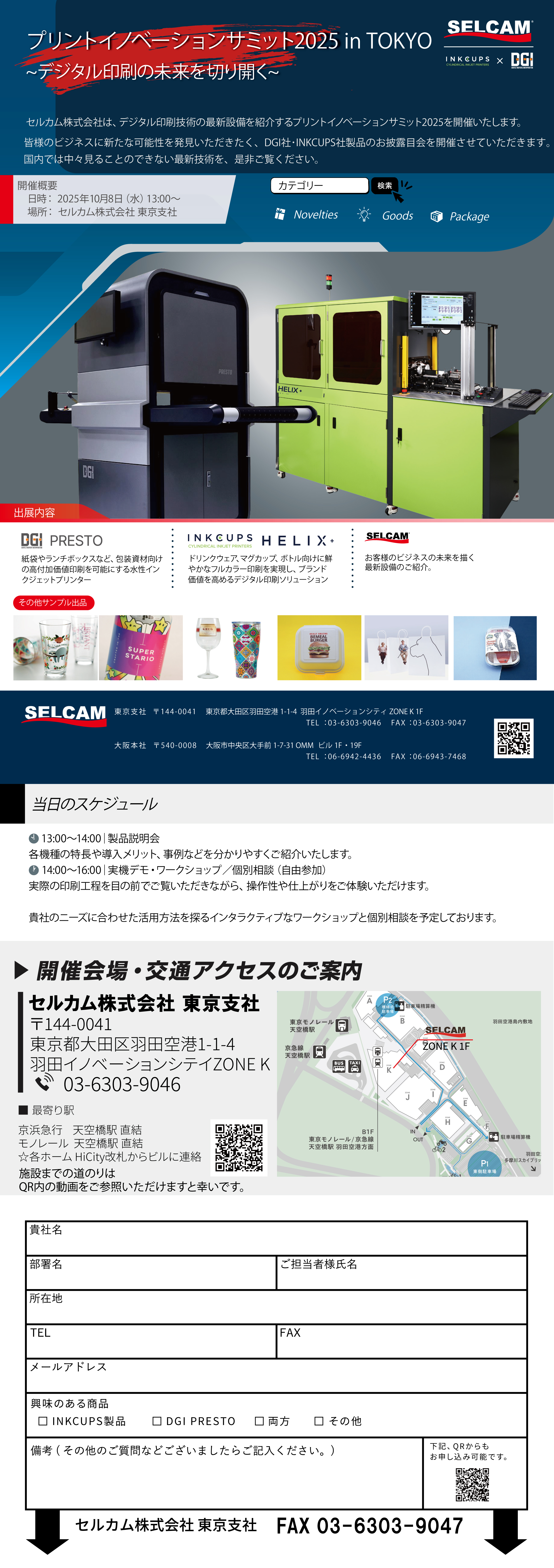 セルカム株式会社は、デジタル印刷の未来を体感できるイベント 「プリントイノベーションサミット2025 in TOKYO」 を開催いたします。