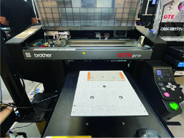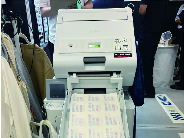 また、トナーインクを使用したDTFプリンタも参考出品されており、コンパクトなサイズながら糊付けを同時に行えるため、Tシャツにプレスするまでの工程を簡略化できます。