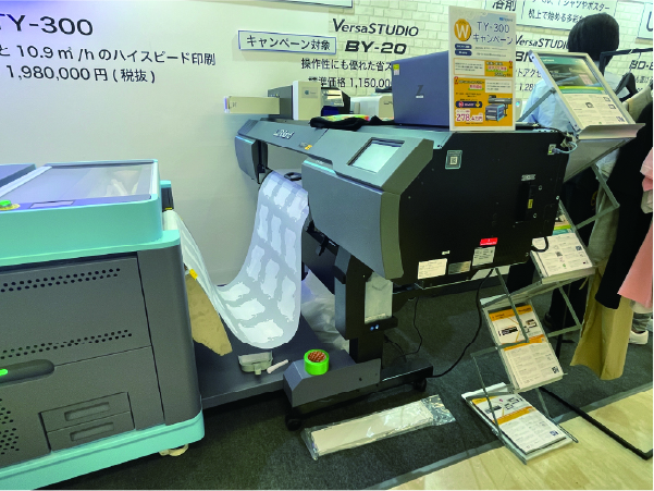 弊社大阪本社のショールームにも設置されているロールtoロールのDTFプリンター「TY-300」をはじめ、生産性・導入コストともに優れたフラットベットUVプリンター「 MO-240」、コンパクトな筐体のフラットベッド型UVプリンター「BD-12」を展示。
