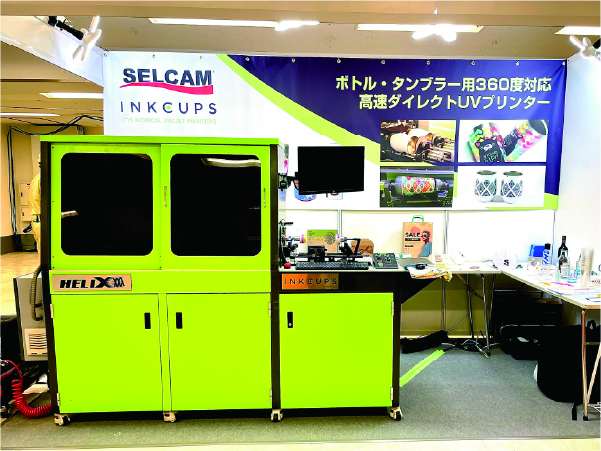 当社のブースでは、タンブラーやコップなどボトル類への印刷が可能なINKCUPS社の「HELIX」を展示しました。印刷時間は最短で約1分。驚異的なスピードで、つなぎ目も違和感なくしっかりとプリントされます。