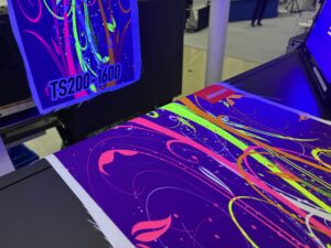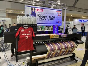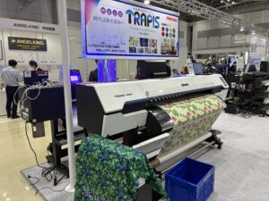 新製品と広幅DTFプリンター: 先日販売が開始された、蛍光インクを搭載可能なコンパクトな昇華転写プリンターTS200-1600を展示。ブラックライトに反応する蛍光インクは独特な表現を可能にします。小規模施設に最適なモデルです。 また、広幅DTFプリンター【TxF300-1600】も実機展示されており、【TRAPIS】との組み合わせによる多様な表現方法が注目されていました。
