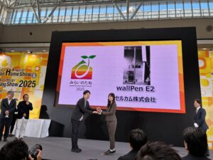 今回の展示会で「みらいのたね賞」を受賞しました。「みらいのたね賞」は、建築分野の第一線で活躍する選考員が毎年設定するテーマに沿って優れた建材・設備製品を選出する賞で、今年のテーマは「共感力」。300製品の中から11製品の1つとして選ばれ、展示会主催の「みらいのたね賞ツアー」でも紹介されました。取材記事は「Japan Home Show & Building Show」の公式HPにも掲載予定で、詳細は追ってお知らせいたします。
