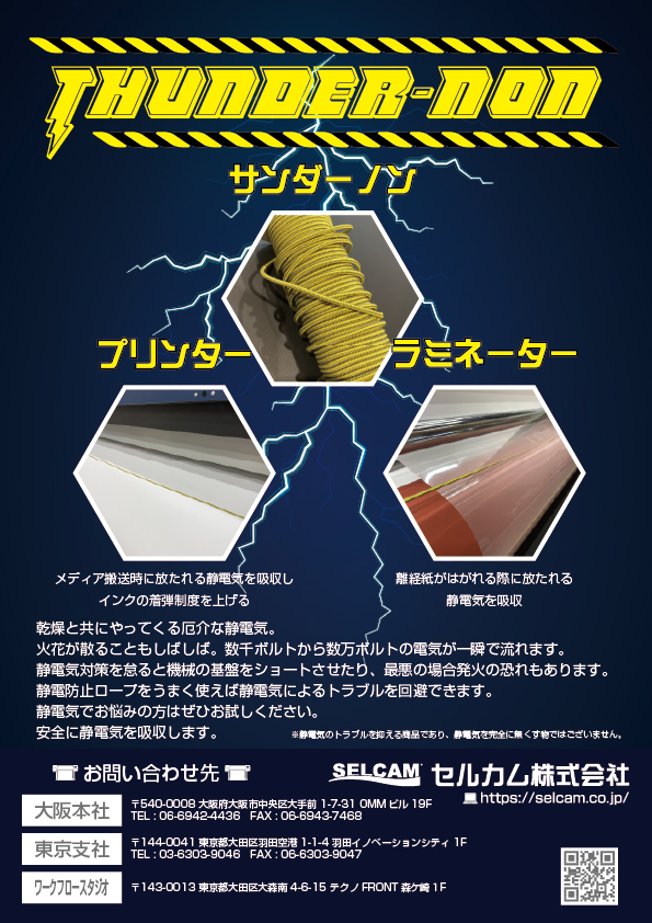 私たちもこれまで多くの静電気除去グッズを試してきましたが、コストパフォーマンスと効果のバランスで、この【サンダーノン】に勝るものはありませんでした。 「冬場の印刷トラブルをなくしたい」「機械を長く大切に使いたい」とお考えの方は、ぜひ一度お試しください。
