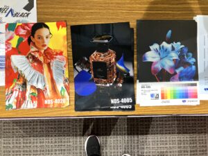ファブリックを主軸とした制作会社らしく、efi VUTEkで出力されたメディアを、自社のノウハウが詰まった製法で寸法通りに縫製。テンションファブリックなど現場修正が難しい商材でも、精度高く仕上げる職人技が光ります。特殊メディアやグロスプリントなど、独自性のある表現も特徴です。