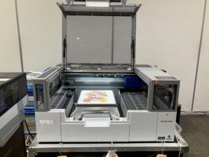 環境配慮型のUltraChrome RSインクを採用したレジンプリンター【SC-R5050】の中でも、大容量インクによる安定した出力が可能な【SC-R5050L】を展示していました。水性インクをベースとしているため、有害物質をほとんど含まず環境に配慮されている点が魅力的です。他にも布製品への直接印刷とDTF印刷の両方に対応したガーメントプリンター【SC-F1050】は発色が良く、細部まで再現できる高品質な仕上がりが特長です。更に、A3サイズのフラットベッド型UVプリンターを参考出品しており、実機として販売される日が待ち遠しいですね!