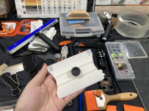 定番商品から隠れた人気商品まで幅広く紹介。約100種類あるスキージーの中でも、カッターガイド付きの【ラップドラゴンスリップカット】は、ウィンドウフィルム施工時に穴へカッターを差し込むことで、まっすぐにカッティングできる点が特長です。また、弊社でも愛用している大型ロールラック【ツリーマックスイージーリーチプロ】は、最大3インチ幅までのロールメディアに対応しています。