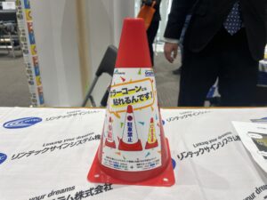 「安全な看板」をテーマに、【3M スコッチカル ペイントフィルム PFシリーズ】を展示しました。コンクリートやレンガ、磁器タイルなど、従来は施工が難しかった凹凸のある下地にもなじみやすく、容易に貼り付けが可能です。近年では、台風などの気象災害による落下事故対策として、従来アルミ複合板を使用していた大手スーパーや企業での導入も進んでいます。