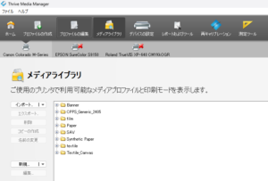 特に【ONYX Thrive™ 24.0】では、プリンターと連携し、「メディアライブラリ」から新規メディアのプロファイルをRIPソフト内で作成するとプリンターに自動反映されるため便利です。