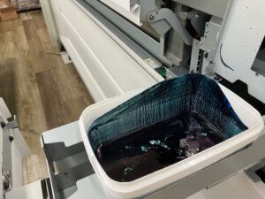 インクがメディアに着弾した瞬間に“ジェル化(半固体化)”して位置が固定され、その直後にLED硬化ユニットで完全硬化します。これにより、インク同士の不用意な混合やにじみの発生を抑制し、色の正確性やシャープさを保ちます。