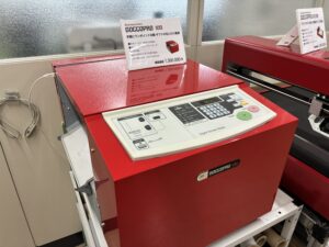 今回の取材で個人的に一番の目玉だと感じたのが、初展示されたこちらの新機種【SAWGRASS VersiFlex SG500】です!デスクトップに置けるA4サイズ対応の昇華プリンターなのですが、これがなかなか面白いんです。